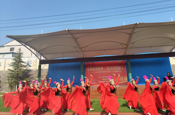 4月17日下午,寶雞市鳳翔區(qū)競存第一小學(xué)操場內(nèi)舞姿翩翩、歌聲飛揚(yáng)?!昂霌P(yáng)延安精神 培育時(shí)代新人”紅色主題教育進(jìn)校園活動(dòng)在這里隆重舉行。