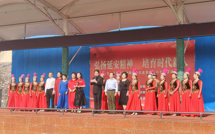 活動(dòng)在現(xiàn)場所有人合唱《沒有共產(chǎn)黨就沒有新中國》的歌聲中落下帷幕,也將整場演出推向了高潮。 此次“延安精神進(jìn)校園”紅色主題宣講活動(dòng),謳歌了中國共產(chǎn)黨百年歷史和輝煌成就,不僅激勵(lì)廣大師生堅(jiān)定正確的政治方向,用延安精神滋養(yǎng)初心、淬煉靈魂,從中汲取奮進(jìn)力量,激發(fā)干事創(chuàng)業(yè)的激情,更讓延安精神真正走入少年兒童中、走到課堂中,把延安精神的好故事、好傳統(tǒng)、好作風(fēng)播撒到少年兒童的心靈之中,引導(dǎo)少年兒童深入了解延安精神,厚植愛黨愛國愛社會(huì)主義的情懷,從小聽黨話、跟黨走,立志成長為德智體美勞全面發(fā)展的社會(huì)主義建設(shè)者和接班人,讓延安精神代代相傳。