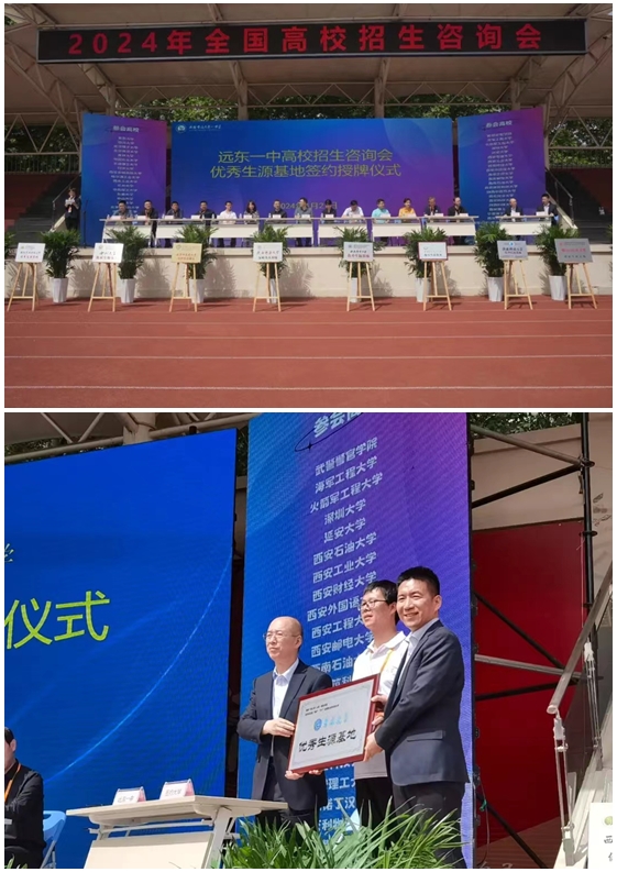 座談會(huì)后,遠(yuǎn)東一中與吉林大學(xué)、西北農(nóng)林科技大學(xué)、北京中醫(yī)藥大學(xué)、西北大學(xué)、陜西師范大學(xué)、西安郵電大學(xué)、西安建筑科技大學(xué)、陜西科技大學(xué)、西北政法大學(xué)、延安大學(xué)等10所高校在會(huì)場(chǎng)主席臺(tái)舉行了隆重的“優(yōu)質(zhì)生源基地”簽約授牌儀式,聯(lián)手構(gòu)建高校-高中協(xié)同育人機(jī)制,推進(jìn)雙方多樣化、多層次的深入合作,共同探索創(chuàng)新人才培養(yǎng)的新路徑,為學(xué)生的發(fā)展提供更廣闊的平臺(tái)和更豐富的資源。與會(huì)領(lǐng)導(dǎo)、高校代表、家長(zhǎng)、學(xué)生共同見(jiàn)證這一激動(dòng)人心的榮耀時(shí)刻,全場(chǎng)掌聲雷動(dòng)。