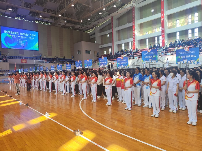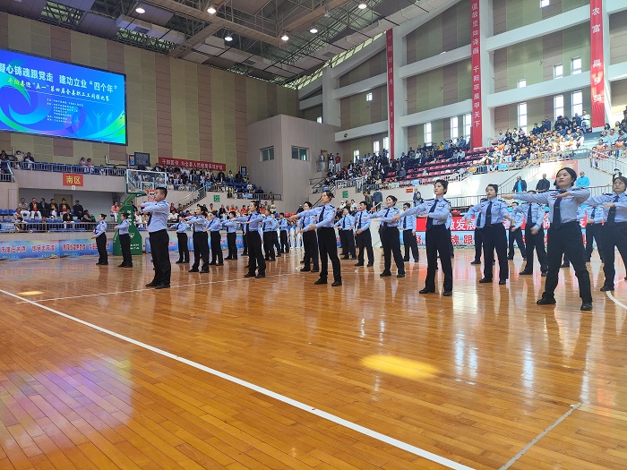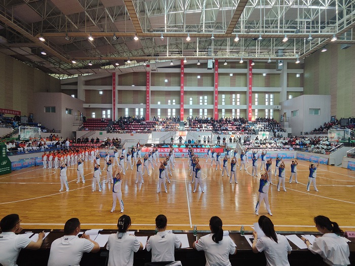 比賽現(xiàn)場,26支參賽隊伍著裝統(tǒng)一、隊列整齊劃一、個個精神飽滿、呼喊著響亮的口號依次入場。城關鎮(zhèn)人民政府代表隊用優(yōu)美的身姿拉開了賽事的帷幕,教體局代表隊以龐大的陣容和新穎的隊形編排將比賽推向了高潮,隊員們伸手、抬腿、彎腰、跳躍,體操動作嫻熟到位、張弛有度。他們以自信昂揚的姿態(tài)展現(xiàn)出朝氣蓬勃和奮發(fā)向上的精神風貌,生動詮釋了廣播體操的豐富內涵和時代氣息,展現(xiàn)出千陽縣干部職工的激情與活力。1000余名參賽隊員展示出高昂的士氣、振奮的精神、颯爽的身姿,極盡所能為集體爭光,為活動添彩,贏得評委和現(xiàn)場觀眾的陣陣掌聲。