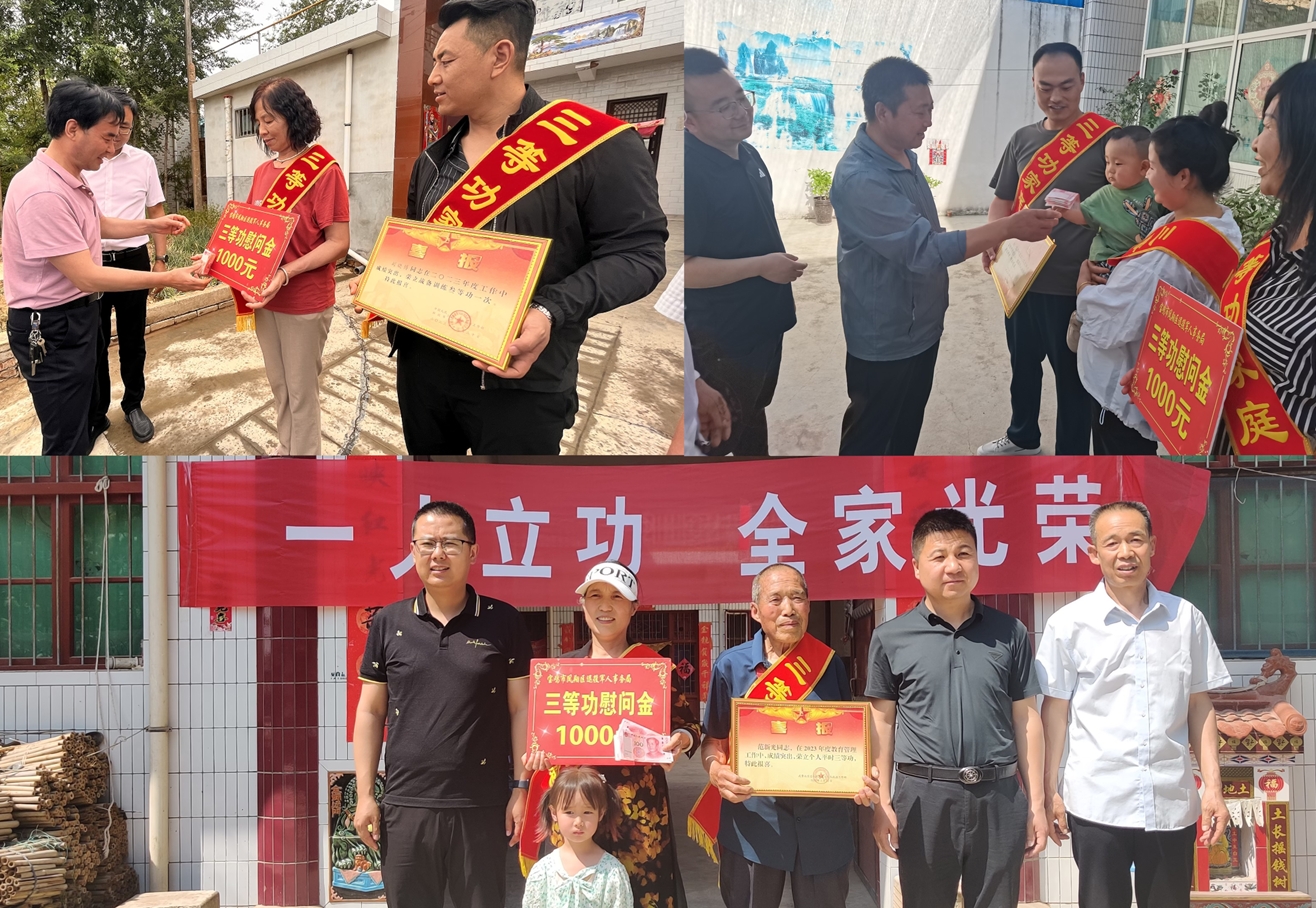 端午節(jié)前夕,陜西省寶雞市鳳翔區(qū)退役軍人事務(wù)局聯(lián)合部分鎮(zhèn)、村(社區(qū))退役軍人服務(wù)站,組成慰問小組,為我區(qū)16個(gè)榮立個(gè)人三等功現(xiàn)役軍人家庭送上立功喜報(bào)和慰問金,送去黨和政府的關(guān)心關(guān)愛及端午節(jié)日的祝福。