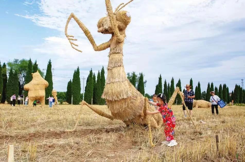 憨態(tài)可掬的“豬小北”、奔騰的駿馬、可轉(zhuǎn)動(dòng)槳葉的飛機(jī)……據(jù)了解,槐北村利用本地秸稈制作了20余個(gè)卡通形象的巨型草雕矗立在田間,并且匠心打造觀光小火車(chē)體驗(yàn)項(xiàng)目,吸引游客前來(lái)觀光旅游。