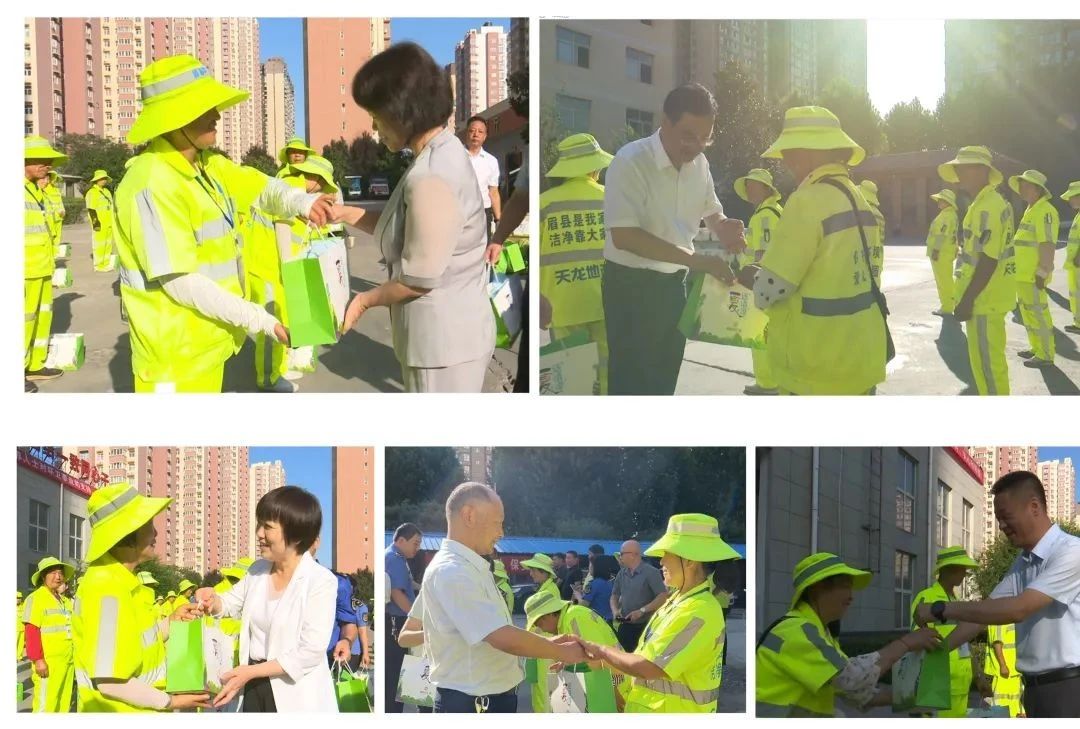 縣委書(shū)記王繼萍一行將“清涼大禮包”送到環(huán)衛(wèi)工人手中,并叮囑大家在高溫天氣下要注意勞逸結(jié)合,做好自我防護(hù),確保身體健康。