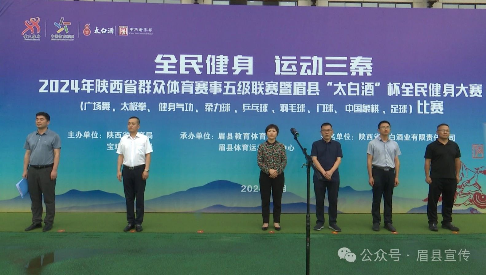 8月7日,“全民健身運動三秦”2024年陜西省群眾體育賽事五級聯(lián)賽暨眉縣“太白酒”杯全民健身大賽開幕式在我縣文體中心舉行。副縣長李倩宣布開幕。