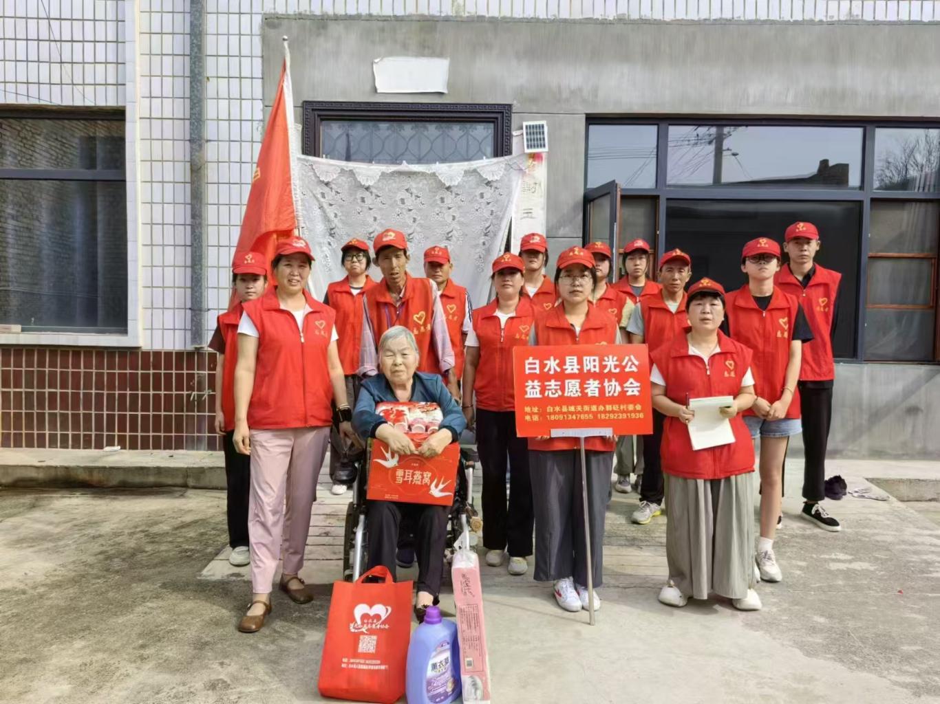 志愿者攙扶行動(dòng)不便的老人(本文圖片由白水縣融媒體中心提供)