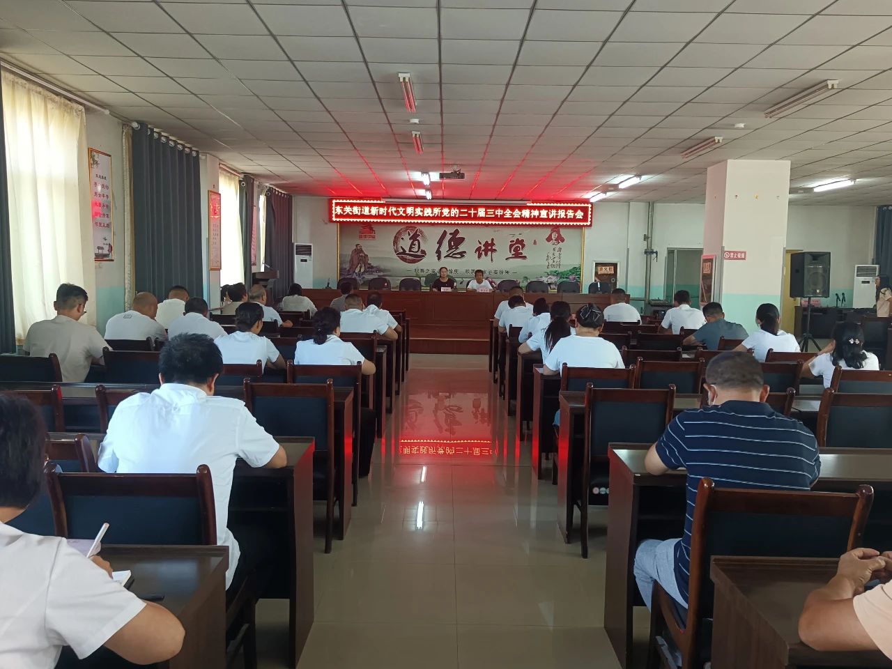 在這個碩果累累的金秋九月,黨的二十屆三中全會精神如同一縷和煦的陽光,灑遍每個人的心田。9月4日和5日下午區(qū)委政法委副書記、區(qū)委宣講團成員馬文超同志和區(qū)新時代文明實踐中心宣講團成員、區(qū)委黨校講師賈婷老師先后來到東關(guān)街道辦,意義深遠的兩場宣講報告會就此拉開帷幕。各村、社區(qū)副主任、監(jiān)委會主任、會計、調(diào)委會主任和各村(社區(qū))后備干部、入黨積極分子、“兩代表”一委員共計110余人,分別聆聽兩場宣講報告。報告會由街道人大工委主任、宣傳委員黃金平主持。