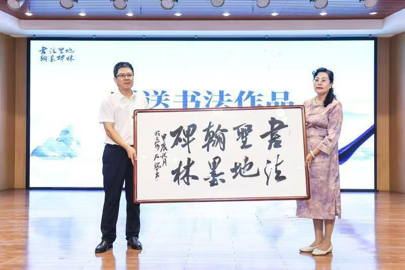 活動(dòng)現(xiàn)場(chǎng),西安市書(shū)協(xié)主席石瑞芳介紹了“山河詩(shī)長(zhǎng)安·翰墨碑林”書(shū)法精品展評(píng)審情況,并向碑林區(qū)贈(zèng)送書(shū)法作品。