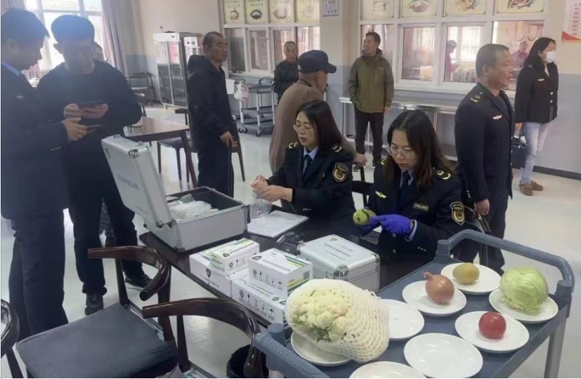 在活動(dòng)現(xiàn)場(chǎng),市場(chǎng)監(jiān)管局工作人員向老人介紹了食品安全知識(shí),讓老人進(jìn)一步了解了食品安全抽檢的重要性,并實(shí)地檢查了食堂操作間、儲(chǔ)藏間等區(qū)域的衛(wèi)生環(huán)境。同時(shí),現(xiàn)場(chǎng)又對(duì)養(yǎng)老中心食堂的水果蔬菜、糧食加工品等8批次樣品進(jìn)行快速檢測(cè),檢測(cè)結(jié)果均合格,并當(dāng)場(chǎng)公布。