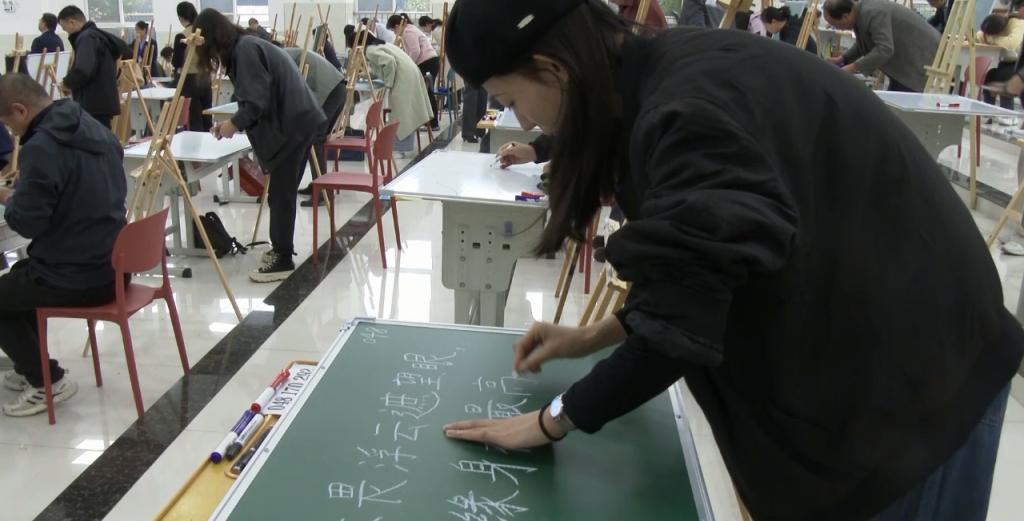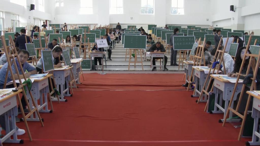 基本功大賽內(nèi)容包括“三字一畫”和“普通話”兩個(gè)方面,大賽分校級(jí)初賽、鎮(zhèn)級(jí)比賽和區(qū)級(jí)決賽三個(gè)階段進(jìn)行。參加本次“三字一畫”區(qū)級(jí)決賽的363名教師分三組比賽,參賽教師在規(guī)定的40分鐘內(nèi)分別完成粉筆字、鋼筆字、毛筆字書寫和簡(jiǎn)筆畫繪制。每場(chǎng)比賽結(jié)束后,評(píng)委老師們從正確規(guī)范、字體結(jié)構(gòu)、章法布局、完整性、美觀性、藝術(shù)性等幾方面用心琢磨,認(rèn)真評(píng)選出優(yōu)秀作品。