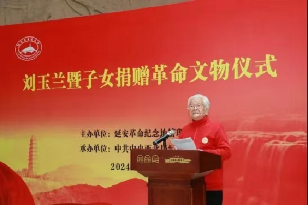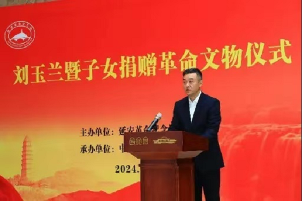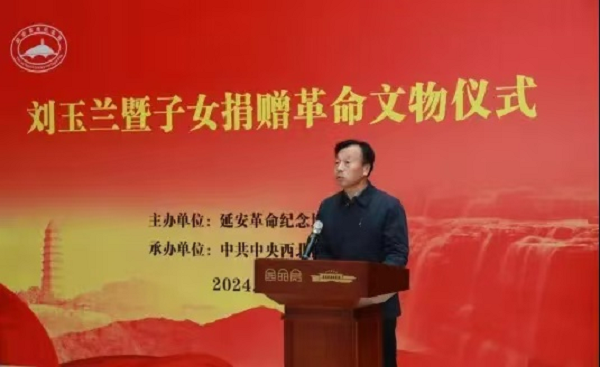 延安革命紀(jì)念地管理局革命文物處處長馬軍堂主持文物捐贈儀式,馬軍堂說,劉玉蘭及其子女慷慨捐贈革命文物的行為,是對延安及西北局紀(jì)念館工作的大力支持和幫助,是劉玉蘭老人和她的孩子們不忘初心,牢記使命,無私奉獻的革命精神的體現(xiàn)。正如習(xí)近平總書記指出的那樣,“保護好、運用好紅色資源,加強革命傳統(tǒng)和愛國主義教育,引導(dǎo)廣大干部群眾發(fā)揚優(yōu)良傳統(tǒng)、賡續(xù)紅色血脈,踐行社會主義核心價值觀,培育時代新風(fēng)新貌”,我們一定會將這些文物保護好、利用好、宣傳好。
