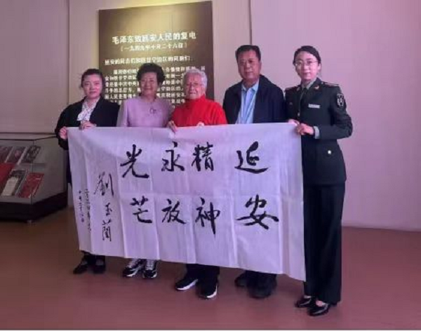 捐贈儀式結(jié)束后,劉玉蘭會長一行參觀了中共中央西北局紀(jì)念館,并為紀(jì)念館題詞“延安精神永放光芒”。與此同時,遠赴新疆、甘肅、青海、寧夏等多省考察的劉志丹研究會考察小組,在副會長劉振彪、副秘書長路光輝的帶領(lǐng)下,通過遠程方式表達了對此次捐贈的熱切關(guān)注和情感共鳴。考察小組表示在劉玉蘭會長指導(dǎo)下,為推動劉志丹所代表的西北革命精神傳承與發(fā)揚,做好此次考察工作。