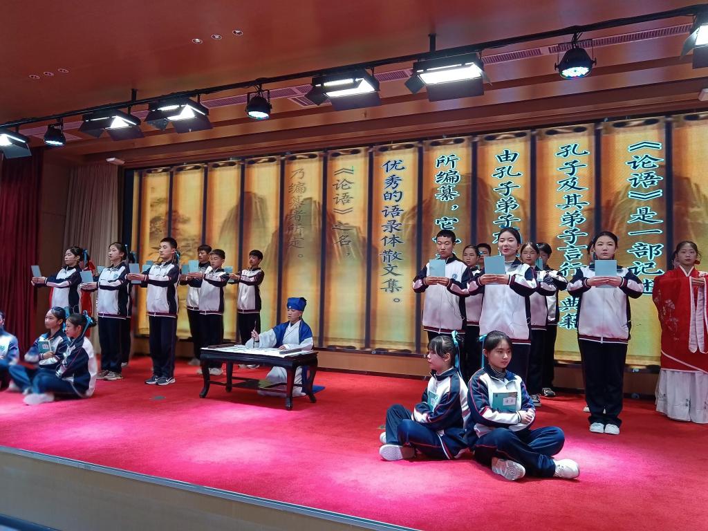 來(lái)自寶雞文理學(xué)院外國(guó)語(yǔ)學(xué)院、寶雞市高新第三中學(xué)、寶雞市千渭小學(xué)、千陽(yáng)縣燕伋小學(xué)的師生和誦讀愛(ài)好者們齊聚一堂,以多種藝術(shù)形式進(jìn)行經(jīng)典誦讀作品演繹,《魚(yú)我所欲也》《詩(shī)經(jīng)·秦風(fēng)·蒹葭》《望魯臺(tái)下的朗朗書(shū)聲》等節(jié)目讓古老的儒家文化在現(xiàn)代的舞臺(tái)上煥發(fā)出新的生機(jī)與活力,展示了儒家文化的深厚底蘊(yùn)和廣泛影響?;顒?dòng)現(xiàn)場(chǎng)氣氛熱烈,掌聲不斷。