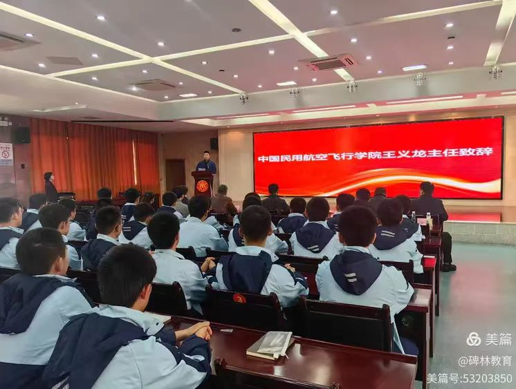 在儀式現(xiàn)場,雙方單位領(lǐng)導(dǎo)、代表以及八中學(xué)生代表、家長代表齊聚一堂,臉上洋溢著期待與喜悅。西安市第八中學(xué)副校長耿箖作了簡短有力、激情滿懷的開場。隨后,八中校長魏昆鵬與民航飛行學(xué)院王義龍主任分別致辭,充滿了對合作的憧憬與堅定信心,暢敘了對未來發(fā)展的美好愿景,令在場之人無不為之振奮。
