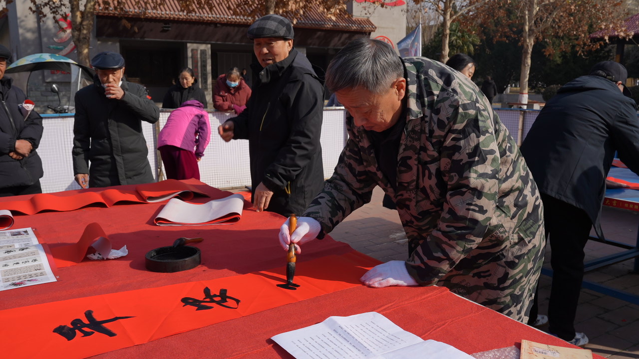 活動現(xiàn)場,講解員為現(xiàn)場的群眾講解張載“六進”思想,多名書法愛好者揮毫潑墨,或龍飛鳳舞、瀟灑飄逸,或結(jié)體遒勁、渾厚圓潤,一副副散發(fā)著清新墨香的喜慶春聯(lián)躍然于紙上,火紅的春聯(lián)寄托著辭舊迎新、接祥納福的美好祝愿。現(xiàn)場群眾們忙著選對子、晾春聯(lián),各個興高采烈,感受著滿滿的年味與祝福。