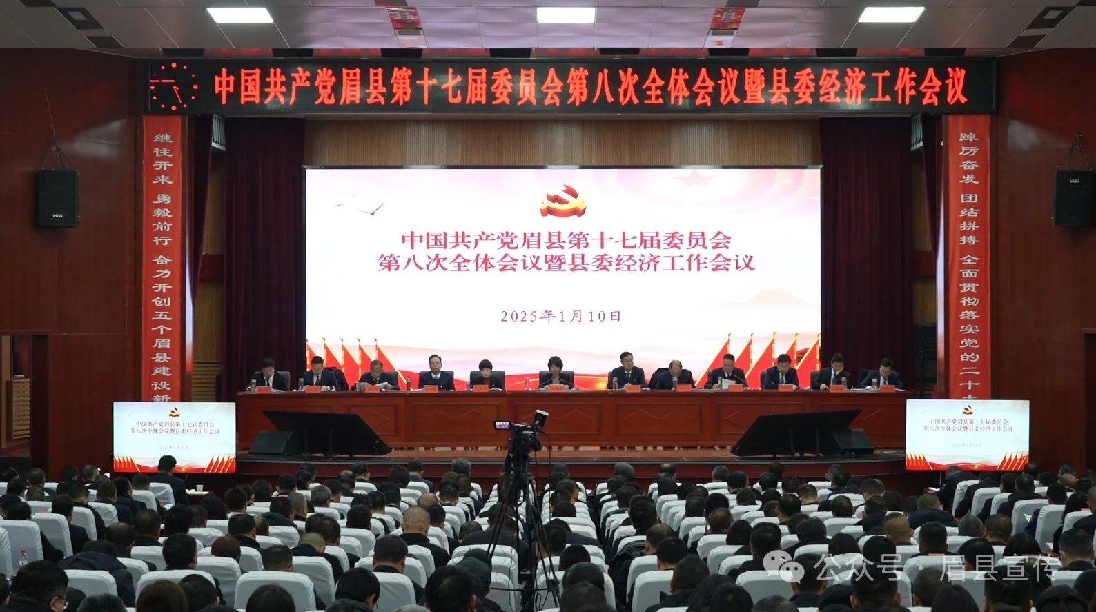 1月10日,中國共產(chǎn)黨眉縣第十七屆委員會第八次全體會議暨縣委經(jīng)濟工作會議召開。會議以習近平新時代中國特色社會主義思想為指導,深入學習貫徹黨的二十大和二十屆二中、三中全會精神,貫通落實習近平總書記歷次來陜和來寶考察重要講話重要指示精神,全面落實中央經(jīng)濟工作會議、省委十四屆七次全會暨省委經(jīng)濟工作會議和市委十三屆七次全會暨市委經(jīng)濟工作會議精神,總結2024年工作,安排部署2025年任務,動員全縣各級黨組織和廣大黨員干部群眾把握大勢,堅定信心,拼搏實干,全力加速“五個眉縣”建設,奮力打造關中高質量發(fā)展先行縣。