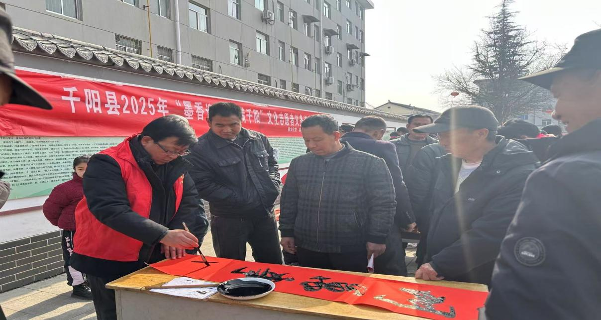 在望魯臺廣場的一角,縣書協(xié)的藝術(shù)家們開展送春聯(lián)志愿服務(wù)活動,他們潑墨揮毫,筆鋒游走間,一幅幅工整美觀、飽含祝福的書法作品躍然紙上,領(lǐng)到春聯(lián)的群眾們喜笑顏開,相互欣賞、贊嘆。市民李偉興奮地說:“能讓書法名家免費送‘福’字、送春聯(lián),實在太榮幸了?!彼痛郝?lián)活動不僅為春節(jié)增添了喜慶氛圍,也成為千陽文化的一個特色活動,吸引群眾走進年集,體驗獨特的文化年味。