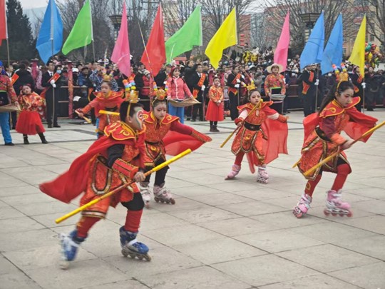 縣城主干道人聲鼎沸,熱鬧非凡。社火游演隊伍浩浩蕩蕩而來,鑼鼓、社火、秧歌等表演讓人眼花繚亂,熱鬧喜慶的氣氛迅速“點燃”整個街區(qū)。來自崔家頭鎮(zhèn)、草碧鎮(zhèn)、張家塬鎮(zhèn)社火聯(lián)隊的隊員們身著節(jié)日盛裝,踏著歡快的鼓點,為廣大群眾和游客獻上了一場精彩紛呈的民俗文化盛宴。