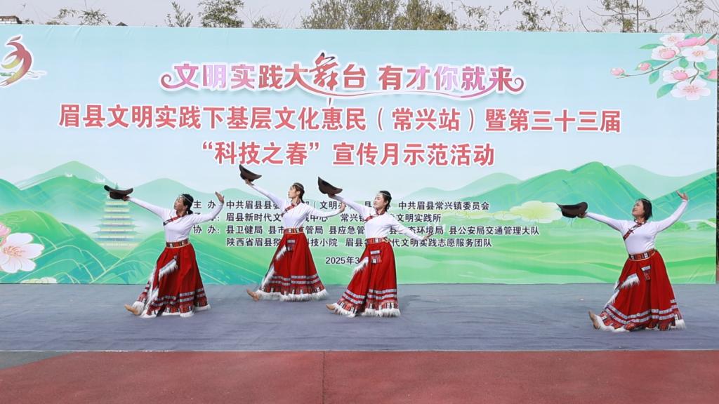 3月28日上午,“文明實(shí)踐大舞臺(tái) 有才你就來”文明實(shí)踐下基層文化惠民暨第三十三屆“科技之春”宣傳月示范活動(dòng)在眉縣東站廣場(chǎng)舉辦。