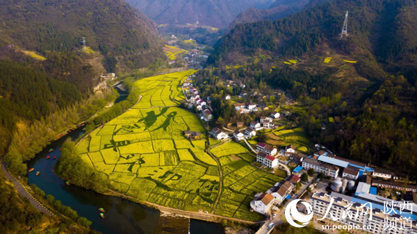 航拍勉縣油菜花主會場。人民網(wǎng)記者吳超 攝