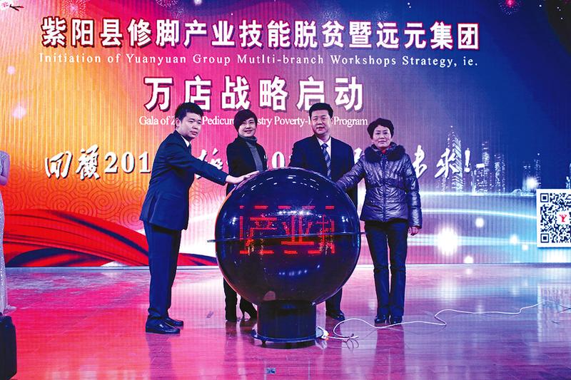 2016年2月2日,紫陽(yáng)縣發(fā)展修腳產(chǎn)業(yè)推進(jìn)技能脫貧動(dòng)員大會(huì)召開(kāi),遠(yuǎn)元集團(tuán)萬(wàn)店戰(zhàn)略啟動(dòng)。 陳剛攝