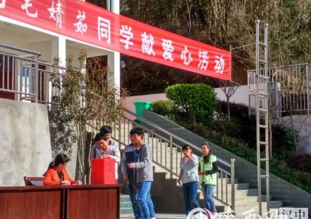 毛婧茹是鎮(zhèn)巴縣平安中學(xué)七年級(jí)學(xué)生,她患病情況一直牽動(dòng)著全校師生的心,大家除了在微信上積極捐款外,4月6日,在該校團(tuán)支部及工會(huì)的倡議下,為毛婧茹同學(xué)進(jìn)行獻(xiàn)愛(ài)心捐贈(zèng)活動(dòng),老師、學(xué)生紛紛走向臺(tái)前捐款箱,數(shù)百的、幾十的、幾塊的都代表著每個(gè)老師和學(xué)生的一份愛(ài)心。這個(gè)貧困山區(qū)的學(xué)校師生僅有100余人,共籌得善款3425.1元,當(dāng)天下午學(xué)校募捐活動(dòng)負(fù)責(zé)人已經(jīng)及時(shí)將善款送達(dá)到毛婧茹家人手中。