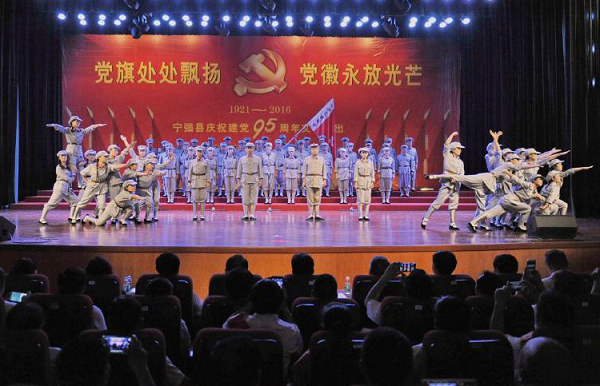 6月28日,寧強(qiáng)縣舉辦以“黨旗處處飄揚(yáng),黨微永放光芒”為主題的慶祝建黨95周年文藝演出。連日來,寧強(qiáng)縣積極組織黨員開展走訪慰問、文藝演出、知識競賽、黨員做義工等慶“七一”活動,回顧黨的光輝歷程,頌揚(yáng)黨的豐功偉績。劉炳林 攝