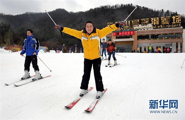 游客在紫柏山國際滑雪場滑雪(1月11日攝)