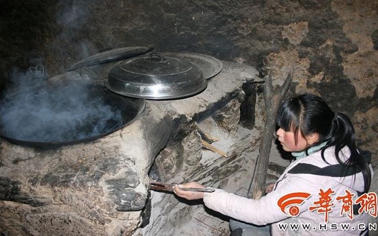 一身破舊的衣服,連穿的褲子都破了個洞,她就是胡小薇??吹接腥藖恚蟠蠓椒狡饋斫哟?。走進胡小薇的家,黑漆漆的,屋子中間放著一張床,墻上貼滿了獎狀。不大的灶房里,一個石碾子占據了一半空間,鍋灶里柴火正旺,胡小薇的母親孫慶蘭正在燒水,鍋臺上放著一盆酸菜。