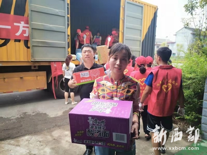 洛南的災(zāi)情引起社會(huì)各界廣泛關(guān)注。西安一花丁教育科技有限公司高新分公司負(fù)責(zé)人張婷得知災(zāi)情后,和陜西農(nóng)村報(bào)社聯(lián)系希望給受災(zāi)群眾奉獻(xiàn)一份愛(ài)心。陜西農(nóng)村報(bào)社商洛報(bào)道組在和洛南縣紅十字會(huì)溝通對(duì)接后,了解群眾急需生活用品和救災(zāi)物資種類(lèi)。隨后,西安一花丁教育科技有限公司高新分公司在西安市采購(gòu)礦泉水2000件,方便面800箱,榨菜2000包,餅干2000包,面包2000個(gè),蔬菜6余噸等其他價(jià)值15萬(wàn)余元的物資,通過(guò)聯(lián)系云聚物流陜西分公司資助一輛21米長(zhǎng)半掛車(chē)。
