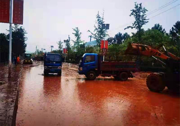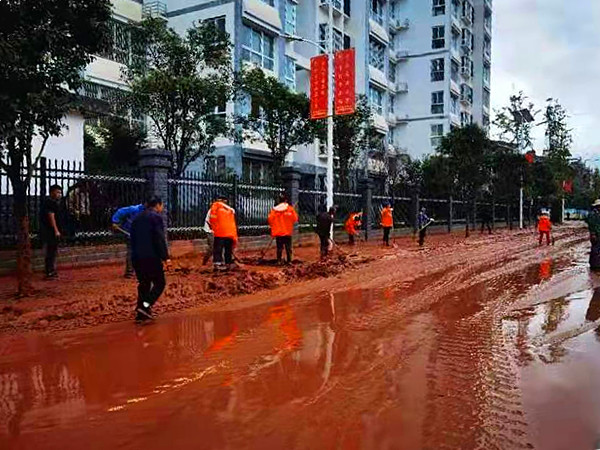 在抗汛救災中,沙河子鎮(zhèn)政府鄰近的紅光社區(qū)張溝組村后沙溝大壩被暴雨沖毀,一時間泥沙俱下,沿途沖垮溝沿,泥河漫灌到村莊前的紅光大道、迎賓路、環(huán)南路及人行道和公共設施場所的二點六公里之多。大量的淤沙泥水漫延了路面、人行道約三十公分,厚處達到五十公分左右,直接給當?shù)鼐用裆睢⒊鲂袔砝щy。針對水災情況,鎮(zhèn)上當即組織協(xié)調鏟車四輛、運輸車五輛,垃圾車十余輛、志愿者及清潔工五十余人,連續(xù)奮戰(zhàn)五天,清理淤泥沙共1600余方,清理面積達三公里之多,同時清理了各個路段綠化帶,人行道、公共區(qū)域設施活動場所泥沙1000余立方。此次抗洪救災,清理泥沙防汛工作取得了成效,方便了群眾生活出行,得到了當?shù)厝罕姷暮迷u。