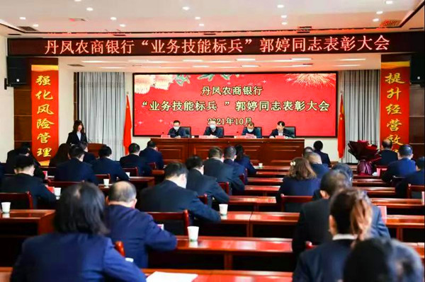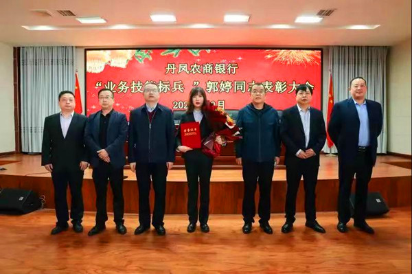 劉武宣讀了《丹鳳農(nóng)商銀行關(guān)于對郭婷同志的表彰決定》和省聯(lián)社商洛審計中心的《賀信》。他講到:郭婷同志參加信合工作以來,愛崗敬業(yè)、工作認(rèn)真、謙虛好學(xué)、任勞任怨、勤勉盡職,得到了各級領(lǐng)導(dǎo)的充分肯定,受到了全體員工的稱贊和好評。在參加陜西省金融業(yè)第五屆職工崗位技能大賽集訓(xùn)的4個月,刻苦努力、專注練習(xí),犧牲親情友情,克服各種困難,付出了心血和汗水,取得了矚目的成績,這既是郭婷同志的榮譽(yù),更是丹鳳農(nóng)商銀行的驕傲。他要求:全體員工要以郭婷同志為榜樣,學(xué)習(xí)她敢于拼搏、勇爭一流的工作精神,學(xué)習(xí)她愛崗敬業(yè)、樂于奉獻(xiàn)的良好品德,認(rèn)真干好本職工作,在崗位上建功立業(yè),出色地完成總行分配的各項任務(wù),奉獻(xiàn)自我的才智和力量。