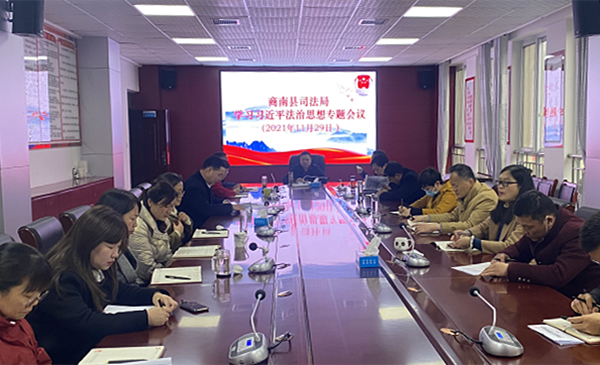 在即將迎來第八個國家憲法日暨第四個“憲法宣傳周”的重要時期,商南縣司法局召開全體干部職工大會,持續(xù)深入學(xué)習(xí)貫徹習(xí)近平法治思想??h公證處負責人郅愛軍主持會議,領(lǐng)學(xué)了習(xí)近平法治思想相關(guān)內(nèi)容。