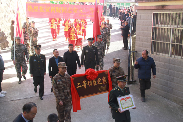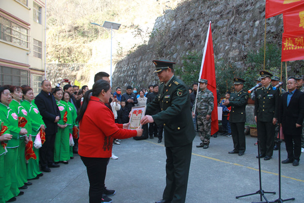 上午十點(diǎn),游行隊(duì)伍抵達(dá)二等功臣何曉所在小區(qū),在小區(qū)廣場,鎮(zhèn)安縣副縣長周忠海主持了慶送喜報(bào)儀式。何曉所在部隊(duì)副政委何宗剛宣讀了立功受獎(jiǎng)通令??h人武部政委吳剛為何曉家屬披上綬帶、戴上大紅花,并送上立功喜報(bào)及慰問金??h委宣傳部馮銳部長等3名縣級領(lǐng)導(dǎo)對何曉在部隊(duì)取得的功績表示了祝賀,并就關(guān)心軍人家庭、學(xué)習(xí)模范事跡以及落實(shí)擁軍優(yōu)屬政策提出了相應(yīng)的要求?!耙蝗水?dāng)兵、全家光榮”、“一人立功、全家光榮”,整個(gè)活動(dòng)在現(xiàn)場群眾響亮的口號聲中圓滿結(jié)束。