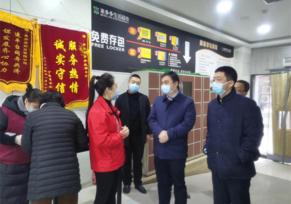 在米多多購物超市入口,崔孝栓、劉鵬與商場工作人員親切交流,詳細了解疫情常態(tài)化防控措施落實情況,叮囑他們要及時提醒顧客規(guī)范佩戴口罩,認真做好體溫檢測和消毒消殺等工作,嚴格落實各項防控舉措,堅決防范疫情風險。相關(guān)部門要做好生活必需品的儲備和組織調(diào)運工作,確保供應(yīng)充足、價格穩(wěn)定,全力保障人民群眾安寧生活。