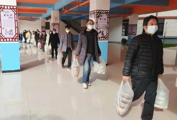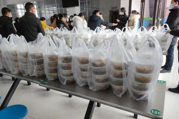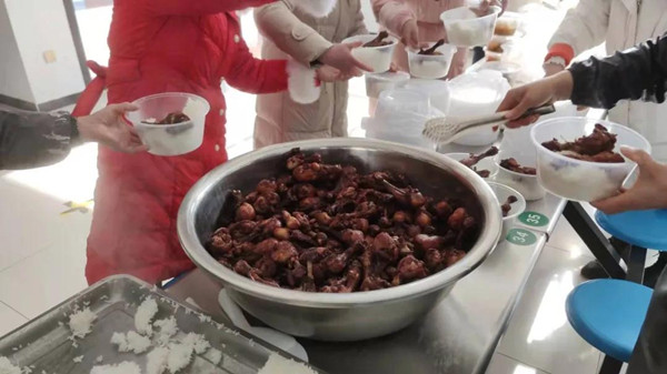 12月30日,全縣疫情防控工作再次收緊,全縣道路實施限行,社區(qū)防控工作人員同樣不例外,大家積極遵守限行規(guī)則,社區(qū)外工作人員提前半小時出發(fā),按時到崗。駐社區(qū)丹鳳縣第六小學校長柯啟朝了解到鳳冠社區(qū)一百多名工作人員在防控一線工作,部分防控工作人員需要步行回家吃午飯,要么就是吃方便面,連日來社區(qū)疫情防控人員夜以繼日連續(xù)加班,餓了就吃方便面,柯校長看在眼里記在心里。第六小學黨支部精心組織學校后勤人員為社區(qū)疫情防控工作人員準備了130份熱騰騰的飯菜和熱湯,還為每人加了兩個雞腿,專門派兩位老師采購了一次性飯盒,20余名老師排著長長的送飯隊伍,將飯菜熱湯送到防疫一線,新城樓門口封控點、八個片區(qū)門房、社區(qū)衛(wèi)生服務(wù)中心、社區(qū)黨群服務(wù)中心、物業(yè)公司一百余人吃上了一頓可口豐盛的營養(yǎng)午餐,第六小學還為社區(qū)送來了防疫生活物資。
