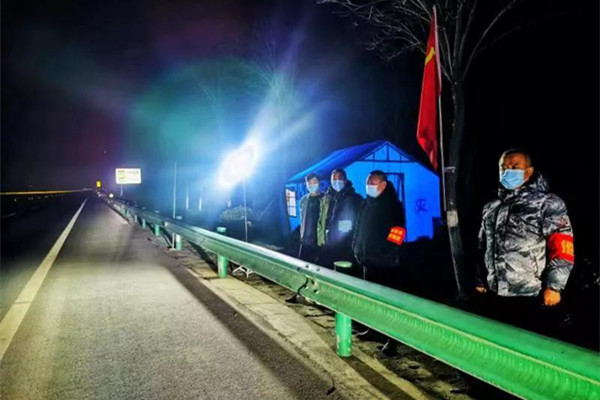 “必須在收費站接受檢查……”1月1日凌晨2點,室外零下6攝氏度,永豐鎮(zhèn)李村志愿者林祥武、孫錚亮巡回在榆商高速李村段,嚴(yán)防死守來洛人員跨越護欄逃避防疫檢查。
