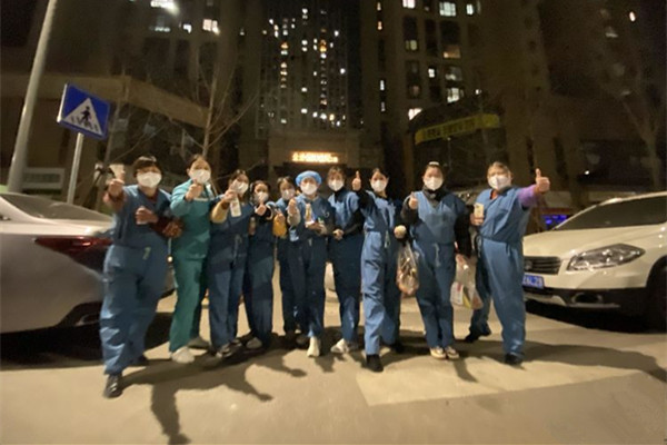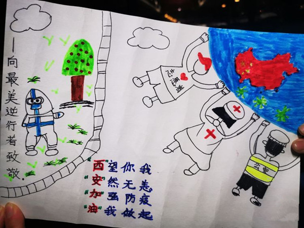 第二天,我們又被分到了金地西灃公元一期二期采樣,這個小區(qū)共有15000多人口,采集任務量特別大,早上臨出門時我叮囑大家,不要喝水,不要喝奶,不要喝粥,免得上廁所浪費防疫物資,大家毫無怨言,趕到目的地立即投入工作,一位三年級的小朋友為我們的隊員送了一副“最美逆行者”的畫,一位70多歲的老爺爺為我們的隊員鞠了一個90°的躬,隊員不知所措,趕緊給老爺爺回了一個90°的鞠躬,并說:不用客氣,這是我們應該做的。各種感動飄然而至。任務完成,在回酒店的車上大家特別興奮,因為我們的工作得到了業(yè)主的認可。曼玉說:唐老師,今天跨年了,咱們拍張照片吧。這時候,大家才意識到,這是2021年的最后一天,跨年了,我們又不約而同地成長了一歲。