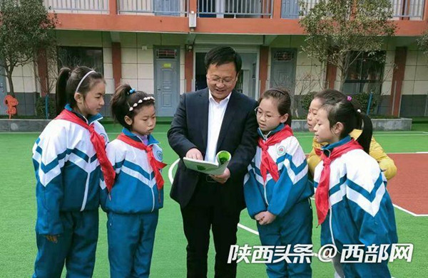 商洛市商州區(qū)第一小學(xué)校長(zhǎng)田小龍和孩子們一起閱讀