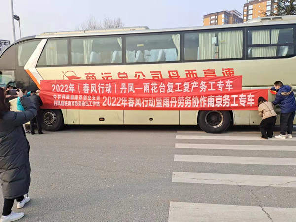 2月9日上午,丹鳳縣2022年春風(fēng)行動(dòng)“點(diǎn)對(duì)點(diǎn)”勞務(wù)輸出集中歡送儀式在丹鳳商鎮(zhèn)高速路口舉行。丹鳳縣委常委、常務(wù)副縣長(zhǎng)鄒定勝,縣委常委、副縣長(zhǎng)薛偉,縣人大副主任、縣總工會(huì)主席賈健康以及縣人社、衛(wèi)健、就業(yè)等部門負(fù)責(zé)人參加了歡送。