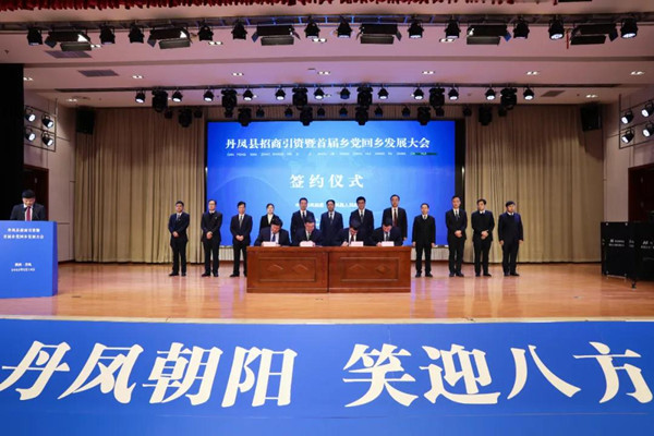 會議由縣委常委、副縣長薛偉主持,縣委常委、常務(wù)副縣長鄒定勝宣讀《丹鳳縣激勵鄉(xiāng)黨回鄉(xiāng)創(chuàng)業(yè)若干措施》《丹鳳縣支持發(fā)展總部經(jīng)濟(jì)八條意見》,會上重點(diǎn)推介了丹鳳縣2022年招商引資項目、市政建設(shè)、鄉(xiāng)村道路項目有關(guān)情況。陜西丹鳳龍橋經(jīng)貿(mào)集團(tuán)、天和防務(wù)技術(shù)股份有限公司、西安眾和餐飲集團(tuán)為丹鳳教育事業(yè)發(fā)展分別捐贈500萬元、100萬元、50萬元。