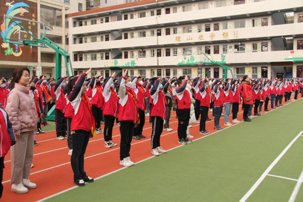 伴著初春的暖陽,鮮艷的五星紅旗在校園內(nèi)冉冉升起。隊(duì)員們面對(duì)五星紅旗,滿懷激情地高唱國歌。歌聲嘹亮,響徹云霄。升旗儀式為本次活動(dòng)拉開了帷幕。