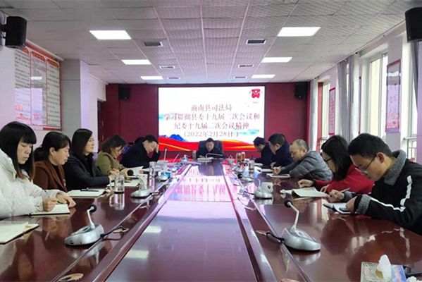 2月28日上午,商南縣司法局召開全體干部職工會,專題傳達學習貫徹縣委十九屆二次全會和縣紀委十九屆二次全會精神,并對近期重點工作進行了安排部署。局機關及下屬單位全體干部參加會議。