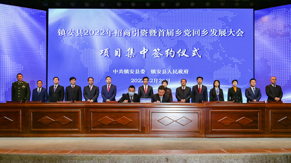 2月26日,鎮(zhèn)安縣召開(kāi)2022年招商引資暨首屆鄉(xiāng)黨回鄉(xiāng)發(fā)展大會(huì),會(huì)上簽約項(xiàng)目100個(gè),合同引資總額183.374億元,鎮(zhèn)安已成為投資興業(yè)熱土;