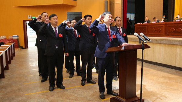 縣人民政府縣長(zhǎng)、副縣長(zhǎng)、監(jiān)察委員會(huì)主任、縣人民法院院長(zhǎng)、縣人民檢察院檢察長(zhǎng)向憲法宣誓。