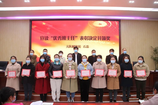 會上,少先隊大隊輔導員石磊宣布優(yōu)秀班主任表彰決定并組織頒獎。