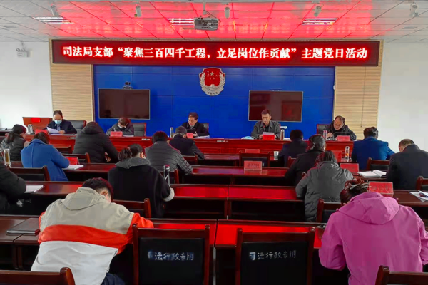 3月23日,洛南縣司法局開展“聚焦‘三百四千’工程,立足崗位作貢獻”主題黨日活動,局機關(guān)支部全體黨員干部參加了活動。