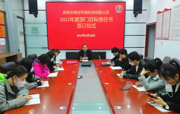 為確保2022年各項工作任務圓滿完成,3月28日,商洛市綠寶環(huán)境科技有限公司舉行了2022年目標責任書簽字儀式,儀式由董事長張小峰主持。