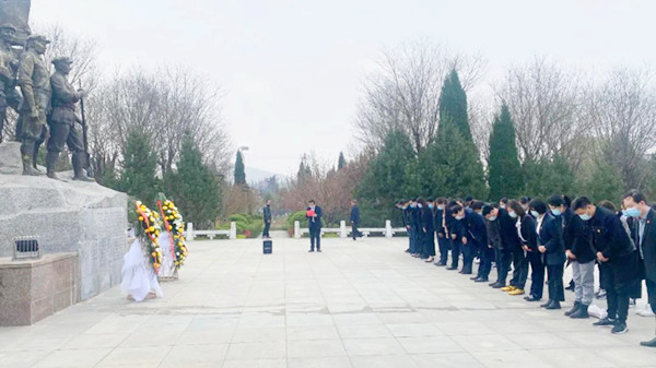 在莊嚴肅穆的烈士紀念碑前,黨員代表懷著崇敬之情,肅立默哀,黨委書記張康美、黨委副書記院長陳詩軍分別敬獻花籃,全體黨員深情鞠躬。淡雅的花環(huán),象征著先烈素潔的靈魂;怒放的花朵,寄托著我們無盡的哀思;高聳的豐碑,指引著我們奮進前行;英雄的事跡,感召我們繼往開來的決心。