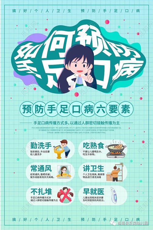 (5)一旦出現發(fā)熱、皮疹(特別是肛周皮疹)或口腔潰瘍等,及時到醫(yī)療機構就診,拖延治療或誤診易使患兒發(fā)展成為重癥病例,甚至導致死亡。