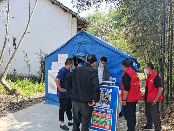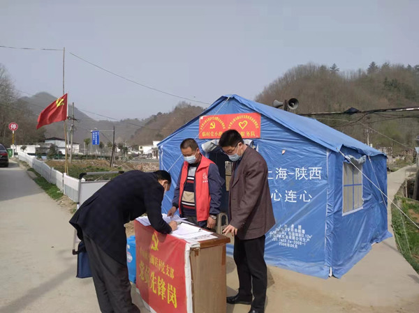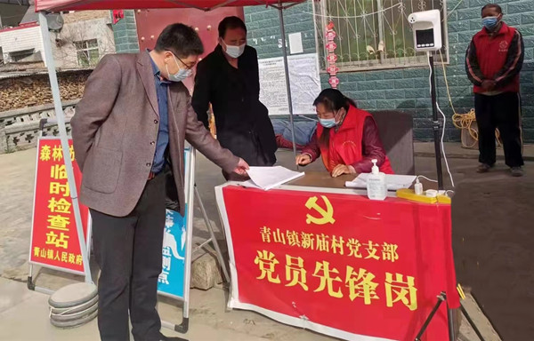 “師傅,您好!請問您是從哪里來的,準(zhǔn)備到哪兒去?請配合我們陜西的疫情防控工作要求,將口罩戴好,下來掃碼、測溫、出示核酸檢測結(jié)果、接受登記……”4月10日16時許,商南縣青山鎮(zhèn)紀(jì)委書記張森林在該鎮(zhèn)新廟與河南西坪木家埡村接壤的卡點督查值守。
